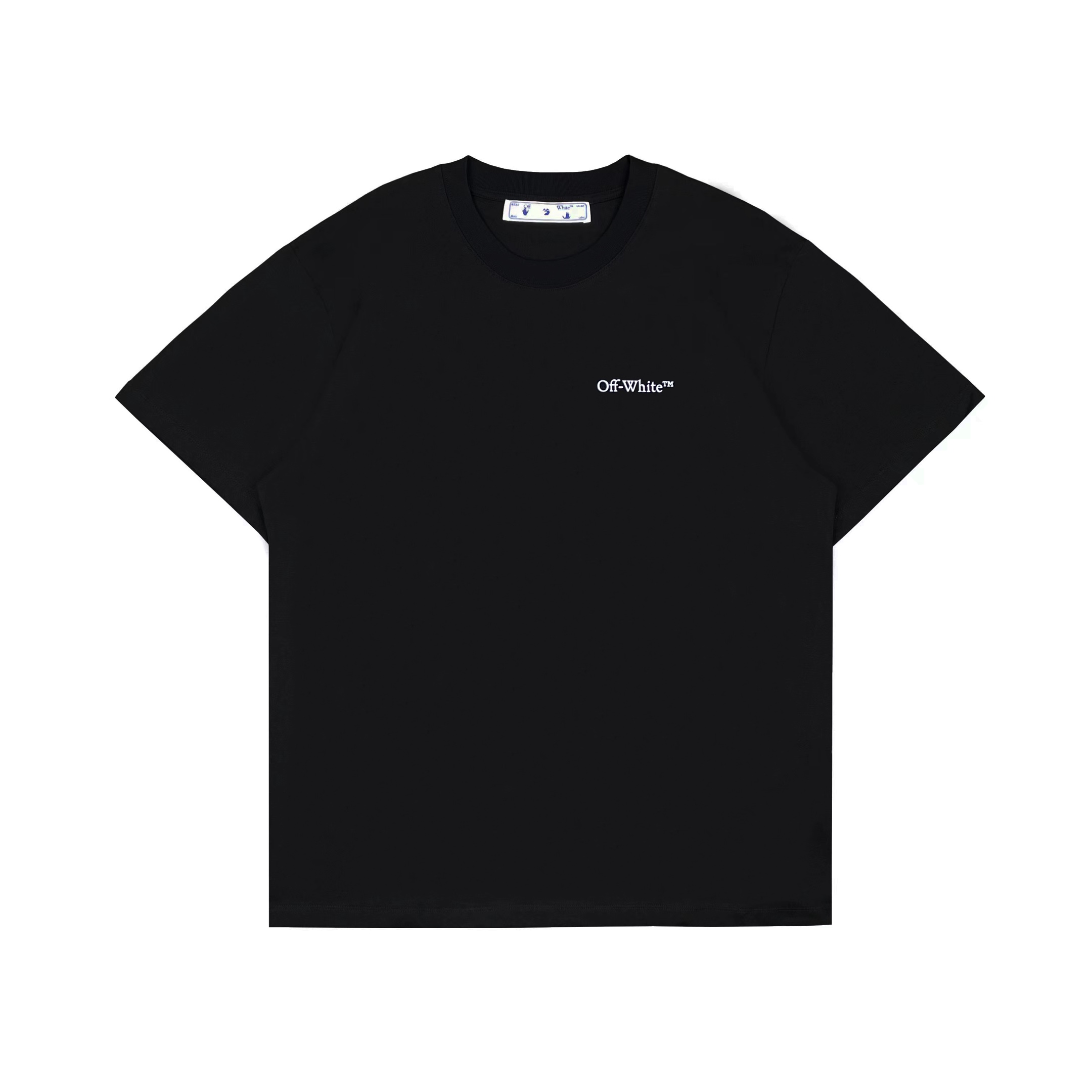 Ow overlapping slash printed short-sleeved black tape T-shirt